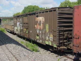 Soo Line box car 43960 built by Pullman-Standard in 1940 and acquired in 1988. This is one of the few pre-World War II boxcars in our collection and has friction bearings.