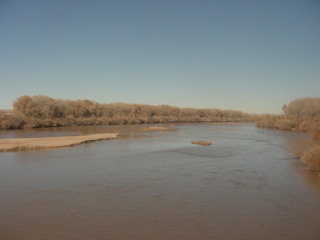 Rio Grande River. The Ian Anderson DVD took me all the way into Albuquerque, where we arrived at 11:21 AM. I walked into town but my usual store was closed so two blocks further west I found somewhere and bought a Klondike ice cream bar and more Coca-Cola. As it was twenty-seven degrees, I did not stay outside too long and started to watch my new Monty Python DVD set "Monty Python Almost the Truth, The Lawyer's Cut" and we departed Albuquerque on time.