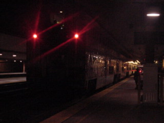 Pacific Surfliner 583 12/25/2009The train arrived and I boarded the empty lower level of Pacific Business Class and started writing the story. Anaheim and Fullerton passed quickly and soon we were making our final sprint to Los Angeles Union Station, where we arrived early and I walked over to Track 11 to wait for the Southwest Chief to La Plata.