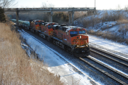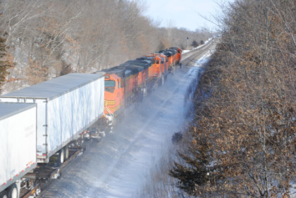 Our train passed four freights and here are the first eastbound BNSF trains that were waiting for us.