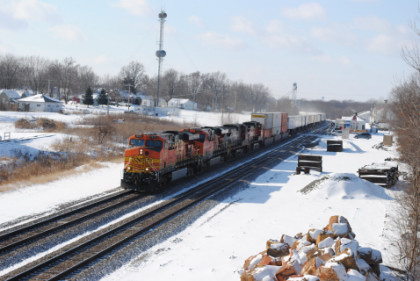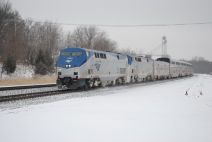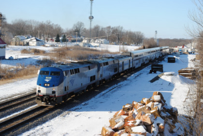 12/27/2009 I awoke at 6:20 and went to the dining car for my French Toast breakfast, sitting with a lady returning home to Kansas City. The train was refuelled at BNSF Argentine's Yard before we arrived at Kansas City early on this snow-covered morning. We departed on time and proceeded to the next stop of La Plata.