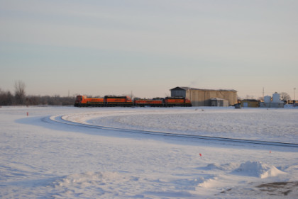 BNSF Power for the spreader. We continued north on Iowa Highway 5 to Knoxville, where we turned left onto Iowa Highway 14, which took us across the Des Moines River to our next destination of the morning, Newton.