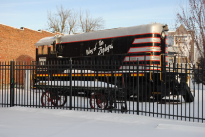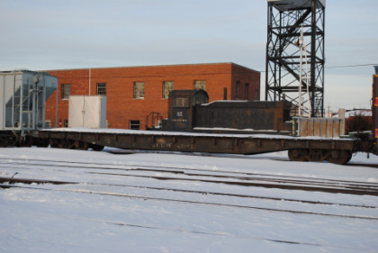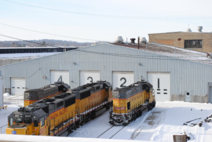 Bob Cox picked me up at the Depot Inn & Suites at 6:15 AM and after we turned on a heater in the Silvery Rails Gallery, drove north on US Highway 63 through Kirksville and on to Lancaster, where we turned left onto Missouri Highway 202, which took us into Iowa, where we turned left onto Iowa Highway 2, taking that into Centerville, our first stop of the day. We found that the Appanoose County Railroad motive power is kept inside their engine house here.