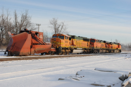 Iowa Traction snow plough 40, a former gondola coonverted to a plough, details unknown.