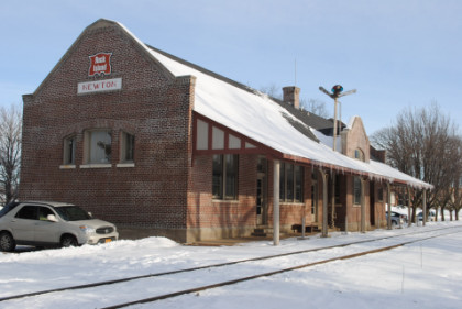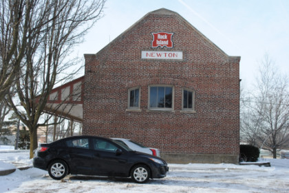 The Chicago, Rock Island and Pacific Newton station built in 1912. We then found the Iowa Interstate yard, but an engine was switching out of view, and also found the shop building where the railroad's QJ steam engines were stored. We left town and continued north on Iowa Highway 14 to our next stop.