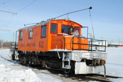 Iowa Traction steeplecab switcher 60, ex. Iowa Terminal 60 1961-1987, exx. Mason City and Clear Lake Railway 52 1948-1961, exxx. Union Electric Railway 80 1932-1948, nee Youngstown and Ohio River Railroad 5 1937-1932 built by Baldwin/Westinghouse in 1917.