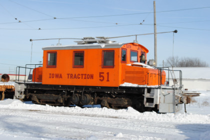 Iowa Traction 51, ex. Iowa Terminal 51 1963-1987, exx. Kansas City, Kaw Valley and Western 505 1954-1963, exxx. Cedar Rapids and Iowa City 57 1940-1954, nee Northeastern Oklahoma 2 1921-1940 built by Baldwin/Westinghouse in 1921.
