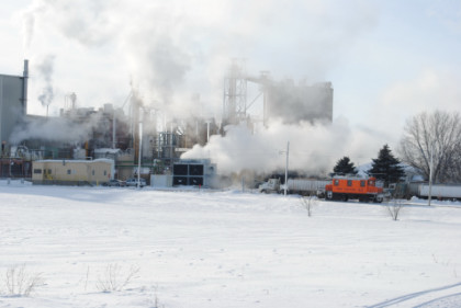 The 1909 Mills Tower display is where the Canadian National and Union Pacific cross each other today, and is part of the Mills Tower Historic District.