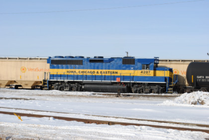 Iowa, Chicago & Eastern GP40-2 4207, nee Southern Pacific 7246 built by Electro-Motive Division in 1984. We made our way east on US Highway 18, which we took into Charles City.