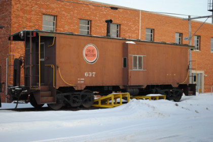 Chicago Great Western Railway bay window caboose 637 which had been numbered 10536 at some point.