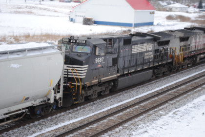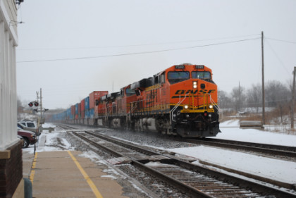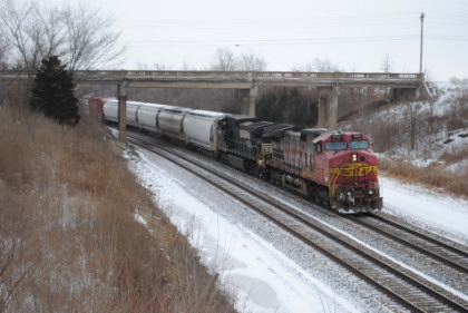 BNSF 7699 East on a coal train. We returned to the Depot Inn & Suites, Nathan checked in and I put my luggage in the Victorian Suite for the rest of my stay here then at 11:00 AM, I was in the lobby waiting for our group to assemble. Steve had printed the directions and I took four people to the van to drive them out to Heartland. We took US Highway 63 across the BNSF mainline and turned left onto Missouri Highway 156, which took me through Novelty and onto Newark, where we turned right onto State Highway E, to County Road 150 and Heartland.