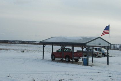 Flags flying on a very cold January afternoon at Sharpe Farm Airport.