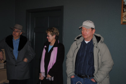 Bob Cox opened the building for us and here is our trio at the Silver Rails Event Center, standing on the stage which was made from the bowling alley in which Walt Disney once bowled.