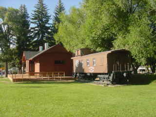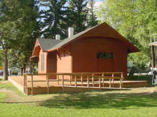St. Louis, Keokuk & Northwestern caboose 157 built by the Chicago, Burlington and Quincy Railroad in 1890 which became Chicago, Burlington and Quincy 14634 in 1904 then Burlington Northern 11086 in 1970. The current rendition is in honor of a local railroad, the Colorado Midland, although they never owned it.