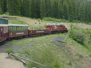 This is a far as our trip went. A narration talk on area history was give during the layover here and the GP9 would lead our train back to Leadville.