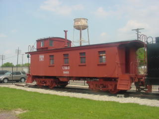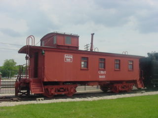 Chicago, Burlington and Quincy wooden caboose 14451 built by the Aurora Shops in 1911.