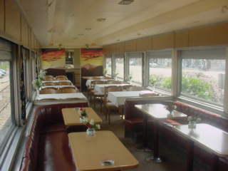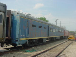 Southern Pacific lounge car 10402 "Golden Trencher" ex. WRLX 402 "American View", exxx. Cadillac and Lake City 402, exxx. Amtrak 10512, exxxx. Amtrak 10502, exxxxx. Amtrak 8502:1, nee Southern Pacific 10402 "Golden Trencher" built by Pullman-Standard in 1949.