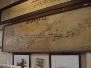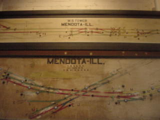 Mendota Railroad MuseumMendota is an Indian name meaning crossing of the trails. In 1853, the Illinois Central Railroad and Chicago & Aurora Railroad crossed at this junction. The Illinois Central was known as a land-grant railroad, the first of its kind. The railroad was built on land granted to it by the government for the construction of the Illinois Central and was made possible by special legislation implemented by Abraham Lincoln and Stephan A. Douglas. The Illinois Central line was at one time the longest in the world and a section is still in place on the west side of the Mendota Depot/museum. Mendota quickly became a big railroad town because it was a major interchange point for freight and passengers.