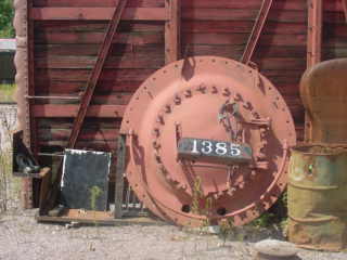 The boiler door of Chicago and North Western 1385. I met some of the museum's staff and they said I could look inside.