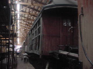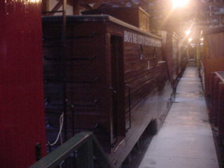 Milwaukee Road bunk car X918050 built in 1951. Sometime between 1958 and 1963, this bunk car was converted from a steel boxcar for the Milwaukee Road Bridges & Buildings Department's use as a bunk car for traveling crews. It was last used by Milwaukee Road's sucessor Soo Line in 1989. At that time, it was sold to a private individual at Prairie du Chien, Wisconsin and stored there for several years. In 2003, it was purchased by a museum member and moved to North Freedom in September of that year for use as a bunk car for museum volunteers. This car was damaged by last year's flood.
