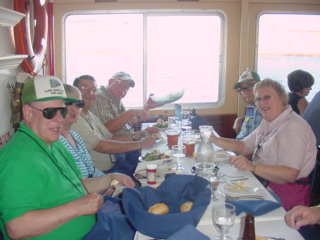 Richard dropped off my luggage and we took it up to my room then drove to the Radisson where Joe Harper was waiting and the three of us boarded the school bus for the Vista Cruise Lines harbor dinner tour. Once we arrived at the boarding location, everyone had to wait until they were ready for us. We chose a table downstairs and sat together.