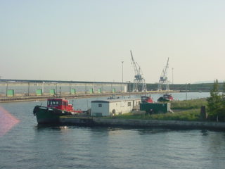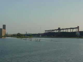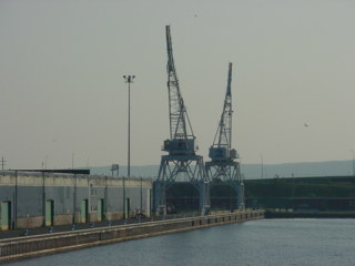 We passed by the draw bridge and made our way toward the aerial lift bridge.
