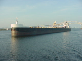 Great Lakes freighter M/V American Mariner, owned and operated by the American Steamship Company and built in 1980 at Bay Shipbuilding Company in Sturgeon Bay, Wisconsin and includes self-unloading technology.