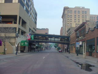 The Duluth Skywalk crosses the streets in downtown Duluth.