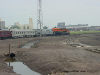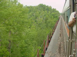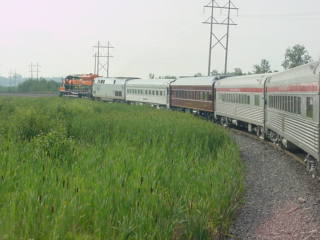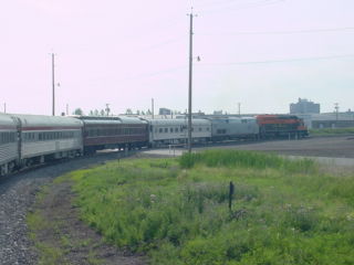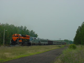 Today's trip over the BNSF line from Duluth to Grand Rapids returns a passenger train to a route that has not seen a regular passenger train since 1959, when it was discontinued by the Great Northern Railroad. According to John Luecke's book, "The Great Northern in Minnesota The Foundations Of An Empire", the line to Grand Rapids got its start as part of the Duluth and Winnipeg Railroad. The D&W was incorporated on February 11, 1878 and was conceived as a locally-backed means of breaking the domination of the traffic to and from Duluth on the part of the existing railroads of the day. D&W hoped to build an "Air Line" to connect the Twin Ports with Winnipeg and the main line of the Canadian Pacific. The D&W began construction of a line along the St. Louis River as early as 1881, but this stalled until 1888, when the D&W began construction in Cloquet and worked its way east. On December 4, 1888, the first rails were spiked down in Cloquet and reached the Mississippi River at La Prairie, just easy of today's Grand Rapids late in May 1889. Duluth and Winnipeg began operations as a logging railroad and no regular train service was scheduled until May 1890. The beginning of regular service came about after D&W made arrangements with the Saint Paul and Duluth Railroad to run its first trains into Duluth in the early 1890.