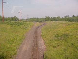 The wye at Gunn, the western junction with the Casco Subdivision from Hibbing and Kelly Lake. It was named for a nearby lake, which in turn was named for a pioneer lumberman. It was thought that our train would be turned here but that did not occur.
