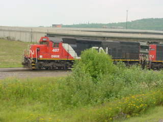 Canadian National SD40-3 407, ex. Duluth, Missabe and Iron Range 407, nee St. Louis-Southwestern SD45T-2 9278 built by Electro-Motive Division in 1973.