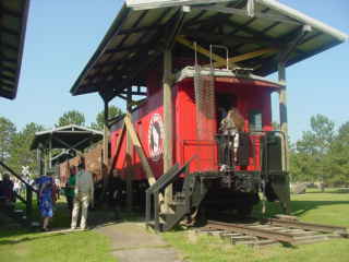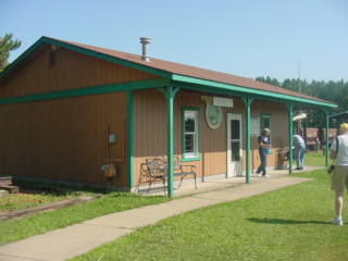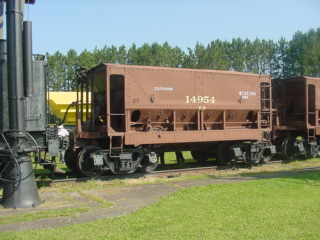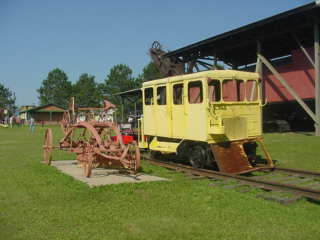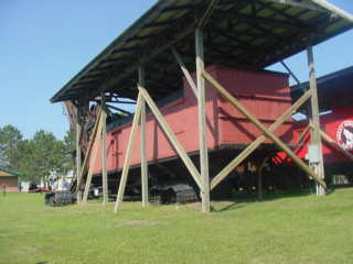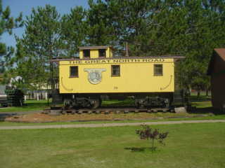 Great North Road caboose C-55, nee Duluth Missabe and Iron Range C-55 built by the railroad in 1906 which made regular runs from the eastern Mesabi to Duluth ore docks and back, and is one of the very last DM&IR cabooses to remain in operation. The City of Biwabik gave the cabooseto the museum in April 1999, where it has been displayed beside the entry drive ever since.