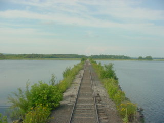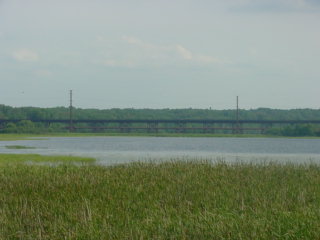 The Oliver Bridge, constructed in 1910 as a railway bridge by the Interstate Transfer Railway Company. A lower deck carrying road traffic was constructed in 1917 and connects the Gary–New Duluth neighbourhood in Duluth with the village of Oliver, Wisconsin. At a length of 1,889 feet, it is principally a steel truss construction. The upper deck carries a single track rail line and a lower deck carries the road connecting Wisconsin Highway 105 to Minnesota State Highway 39. The upper deck was built to allow a streetcar line to be constructed from Gary–New Duluth to south Superior connecting the Duluth and Superior streetcar systems. However, the line was never built and the systems were connected across the Twin Ports Harbor.