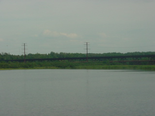 Our train passed beneath Oliver Bridge, whose lower level holds highway traffic while the upper level carries Canadian National trains.