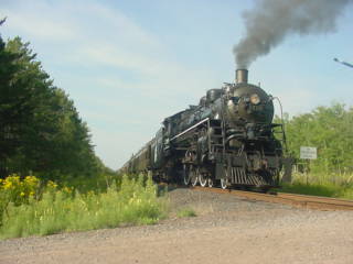 Photo runby one. SOO Line 4-6-2 2719, built by American Locomotive Company in 1923. It ran until the mid-1950's, when it was put into storage then came out of retirement to haul the last steam train on Soo Line tracks on 21st June 1959, a round-trip from Minneapolis to Ladysmith, Wisconsin. It was then given to the City of Eau Claire, Wisconsin, for display in Carson Park. In May 1996, the Locomotive and Tower Preservation Fund began restoration and, two years later, 2719's first steam run was held on 19th September 1998. In June 2000, it was moved to the Wisconsin Great Northern Railroad in Spooner, where it ran summer excursions until 2003.