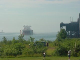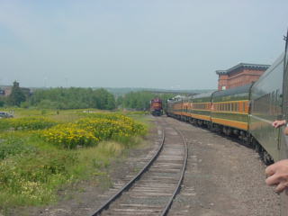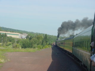 Our train left Duluth by reversing to the switch in order to go to Two Harbors. The Duluth-Two Harbors line was built in 1886 for the Duluth & Iron Range. It runs north east and is always within a few hundred yards of Lake Superior. Once the track gets out of Duluth, the way side is mainly wooded but, occasionally, there are views of the lake. The D&IR was formed in 1874 to haul iron ore from the Minnesota Iron Company's mine in Soudan, Minnesota to Two Harbors. The railroad was acquired by Illinois Steel in 1887, which became part of the United States Steel Corporation in 1901. In July 1938, the D&IR merged with the Duluth, Missabe and Northern Railway to form the Duluth, Missabe & Iron Range Railway.