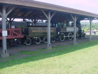 On display west of the station is Duluth and Iron Range 2-6-0 3 built by the Baldwin Locomotive Works in 1883 for Tehuantapec Interocean Railway, but was refused for technical reasons. In need of a locomotive to help lay rails from Two Harbors, the D&IR purchased. Known as "3 Spot", it steamed to Duluth under its own power and was then lashed to a barge for what turned out to a very rough trip to Two Harbors, then known as Agate Bay. The engine was the only wood- burning locomotive ever to operate on the D&IR. It could take fuel from the plentiful adjacent forests and water from the many local rivers and streams as it hauled rails, supplies and equipment from Agate Bay up to the railhead.