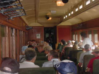 Soo Line 4-6-2 2719 came from around the train and reversed onto it then pulled forward and the first class passengers were boarded first before the coach passengers. I chose a seat in the open window car.