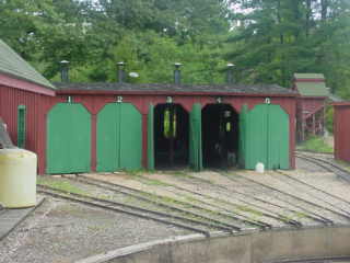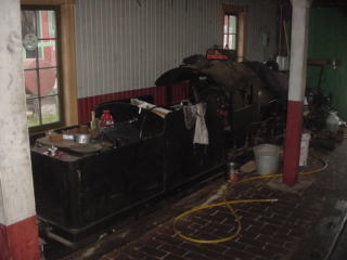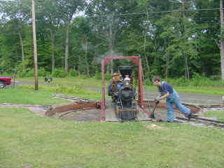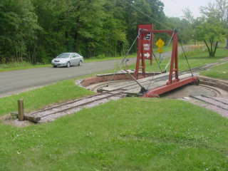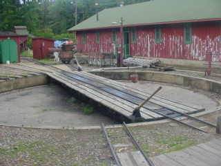 The train reached the run-around track that the steam engine would use after it is turned on the turntable.