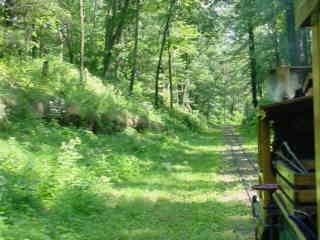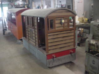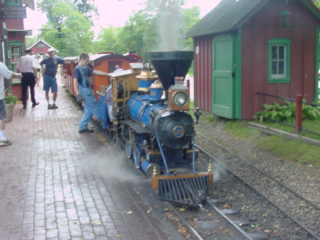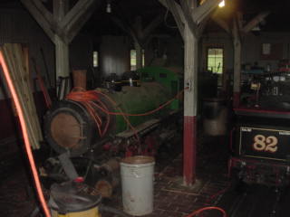 Unfortunately, due to circumstances in the 1970's, the Sandley Light Railway Equipment Works filed for bankruptcy in 1981. However, fans of Sandley-built trains and the R&GN railway established the Riverside & Great Northern Preservation Society to assume the mortgage and management of the R&GN as a living museum tourist attraction. The Society was activated on July 15, 1988. Because 1980 was the last season the R&GN had operated under Sandley management, nature had taken over the railway, so volunteers spent most of 1988-89 getting the railway ready for operation again. During that time the Society was able to work out a deal with the Milwaukee County Zoo to lease steam locomotive 82, which the zoo no longer used in regular service, and finish three 12-person passenger coaches in time for a grand reopening on May 15, 1990.