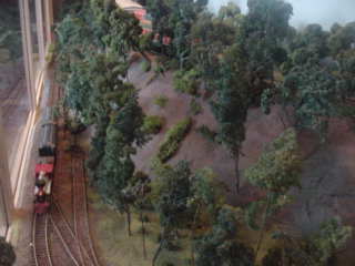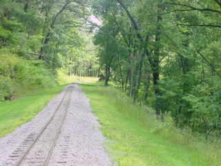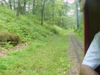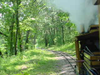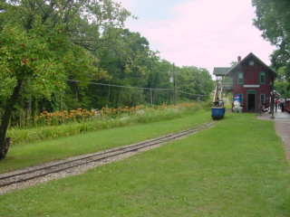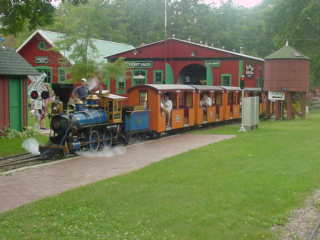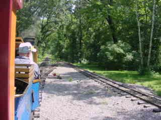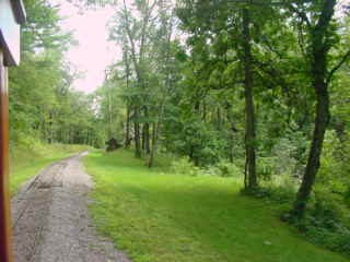The "RGN - The Scenic Route to Riverside Park" was popular with many, but not all, the citizens of Janesville. After three years of neighbor complaints and the city's unwillingness to renew the lease, between 1952-1955 the Sandleys moved the R&GN to Wisconsin Dells, laying tracks on a railroad roadbed that went back to 1857 when the La Crosse & Milwaukee Railroad built a standard gauge railroad through the area. Around 1896 the Chicago, Milwaukee, and St. Paul Railroad, which owned the right-of-way at the time, abandoned that stretch of roadbed because of the steep grade and moved the tracks a few hundred feet southwest, where they are today.