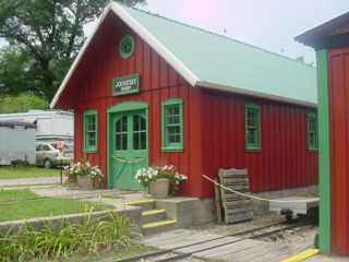 In 1952 the Sandleys purchased the abandoned right-of-way from the Milwaukee Road and laid down 15-inch gauge track on a one-and-a-half-mile, east/west route just off Stand Rock Road about a mile north of downtown Wisconsin Dells. On August 9, 1953, a golden spike ceremony took place to celebrate the opening of the R&GN for business as a steam railway tourist attraction and train manufacturing facility.