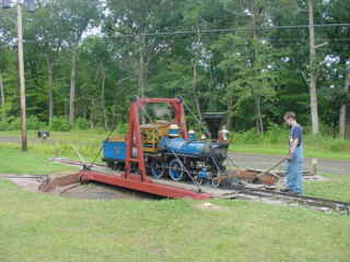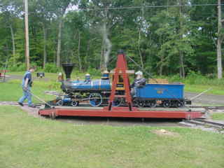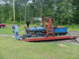 Riverside & Great Northern 4-4-0 No. 98 'D.K. Shrock' built by Sandley Light Railway Works in 1952 on the turntable.