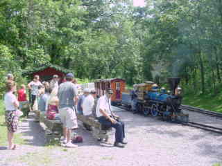 All passengers then detrain and a series of benches have been set up while the engineer explains how a steam engine works.