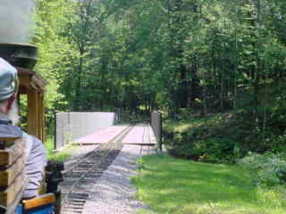The Riverside & Great Northern has had its highlights and lowlights. In the early years the Society often was just barely able to pay the bills, and as is always the case with organizations owned and operated by volunteer members, some haven't always agreed with others as the Society sorted out a path to the future. The R&GN has had its share of disasters, too. On July 2, 1995, a fire started around midnight on the outside of the Boiler Shop near the turntable. Fortunately, the Wisconsin Dells Fire Department responded quickly and a Society member who was spending the night on the premises had 15 years of experience in a volunteer fire department and was able to provide information he knew would be valuable in putting out the fire. After a series of heavy rainstorms in 2004, the fill at Riverside Canyon washed away as water flooded through the canyon. With assistance from government and private resources a trestle bridge was built in 2005-06 to connect the mainline again.