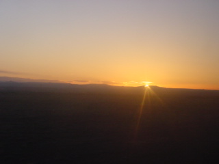 4/4/2009I arose east of Flagstaff to a mostly clear pre-dawn morning and waited for the dining car to open. Interstate 40 along here was closed due to dust storms from yesterday's high winds. Freight traffic seemed to be on a rebound as on I have been seeing or hearing trains passing by. For breakfast, I had French Toast and sausage patties with an interesting man heading to Newton, Kansas.