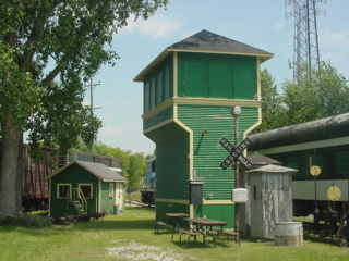 Mershon Tower, formerly at crossings of Pere Marquette/Michigan Central/Grand Trunk Western/Saginaw-Bay City Electric near Carrollton Road andWeiss, built by Michigan Central in the late 1800's.