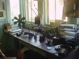 The station agent's desk had many items of interest.