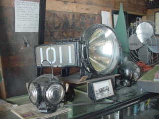 Locomotive headlight and number boards. Next we went down into the basement to see the model railroad.