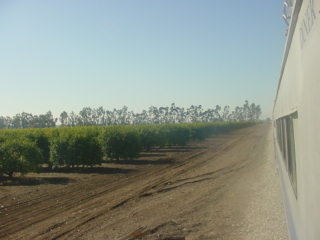 As part of the CAL Rail 2020 Conference in Ventura, a rare mileage trip was offered on Sunday November 8, 2009 on the former Santa Paula Branch of the former Southern Pacific, now the Fillmore Western, Railroad. It was supposed to go from Montalvo to Piru, but track work between Montalvo and Saticoy took those tracks out of service. Chris Parker and I decided to go anyway as we love riding the train in the Santa Paula Valley through the orange groves.